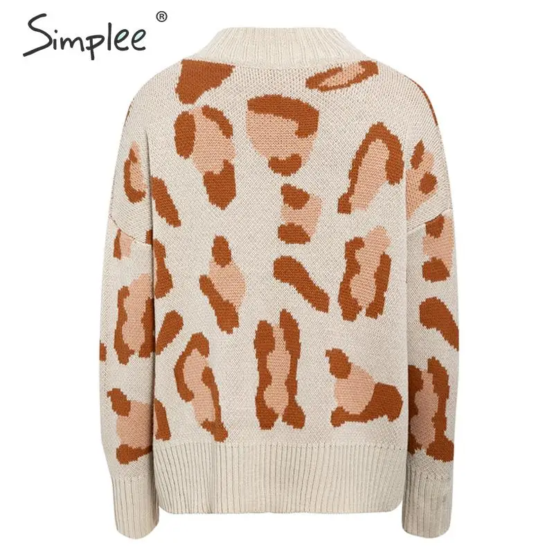 Simplee Turtleneck leopard print pullover sweater women Autumn winter long sleeve female sweater Ca